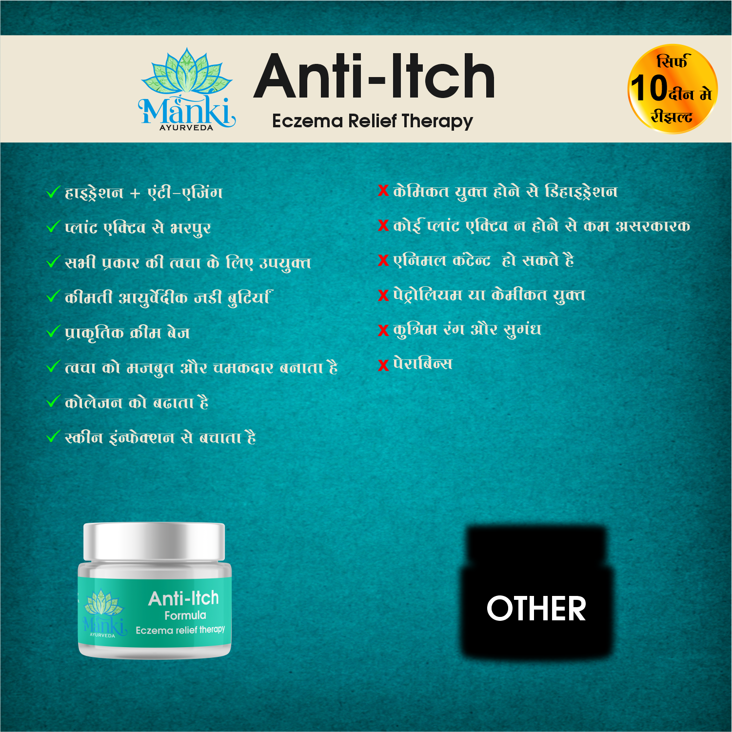 यह औषधि स्किन प्रौब्लमस्(एक्जिमा और खुजली) के लिए एक रामबाण दवा है। और इसके परिणाम की 100% गेरंटी दी जाती हे।